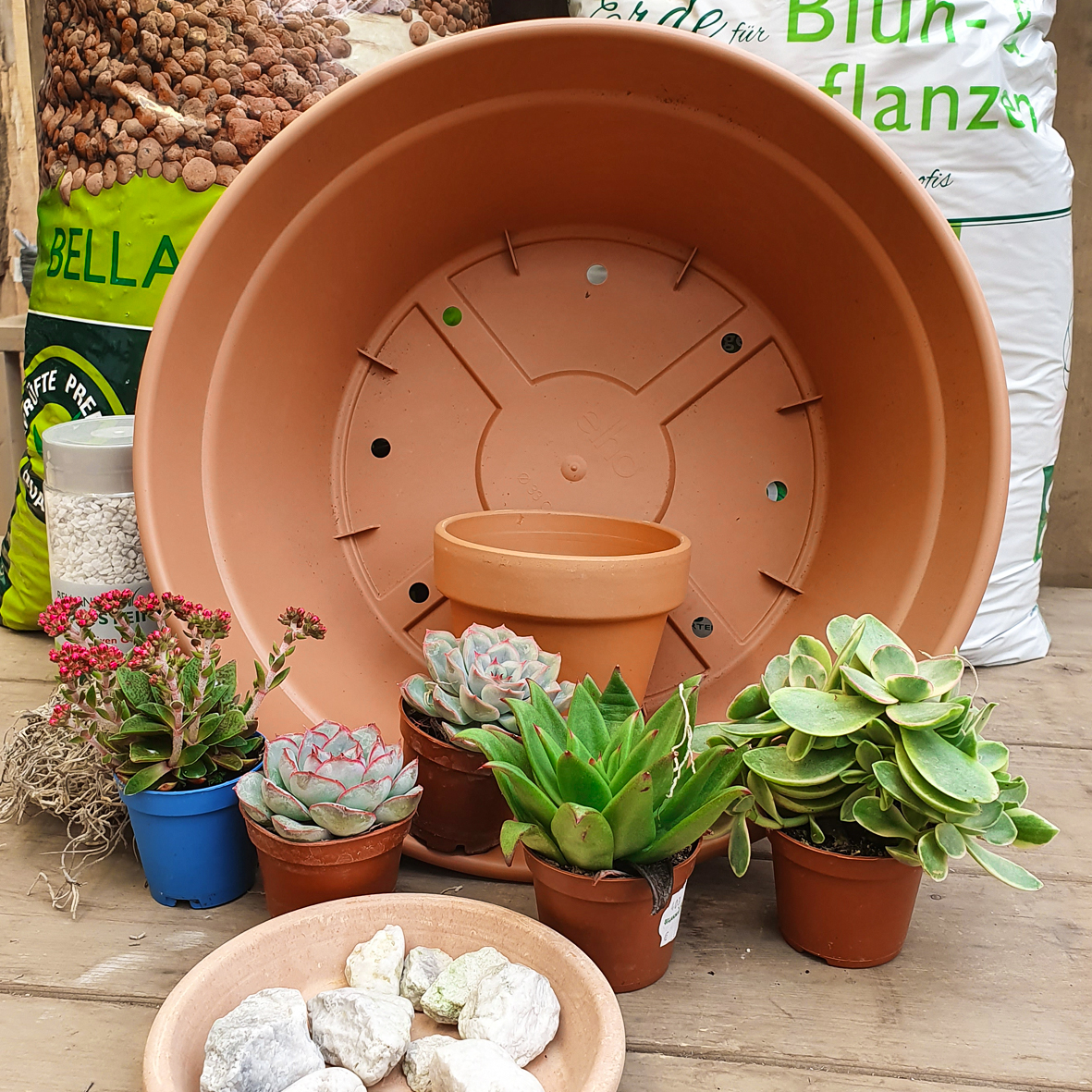 - eine Pflanzschale sowie einen Tontopf