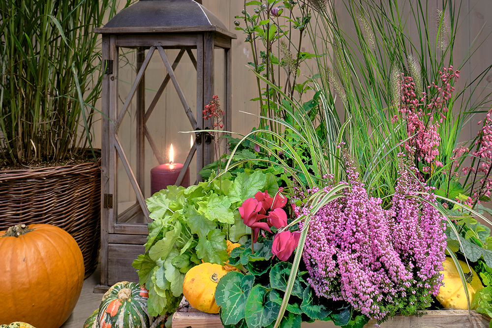 Sobald die Tage kürzer werden, beginnt der Herbst sein buntes Farbenspiel. Warme Farben der Hersbtblüher lösen die kontrastreichen Sommerblumen ab. Reife Früchte glänzen in der Sonne, Kürbisse strahlen in Gelb und Orange. Jetzt wird es Zeit, sich von den sommerlichen Kübelbepflanzungen zu trennen und die bunten Farben des Herbstes nach Hause zu holen.