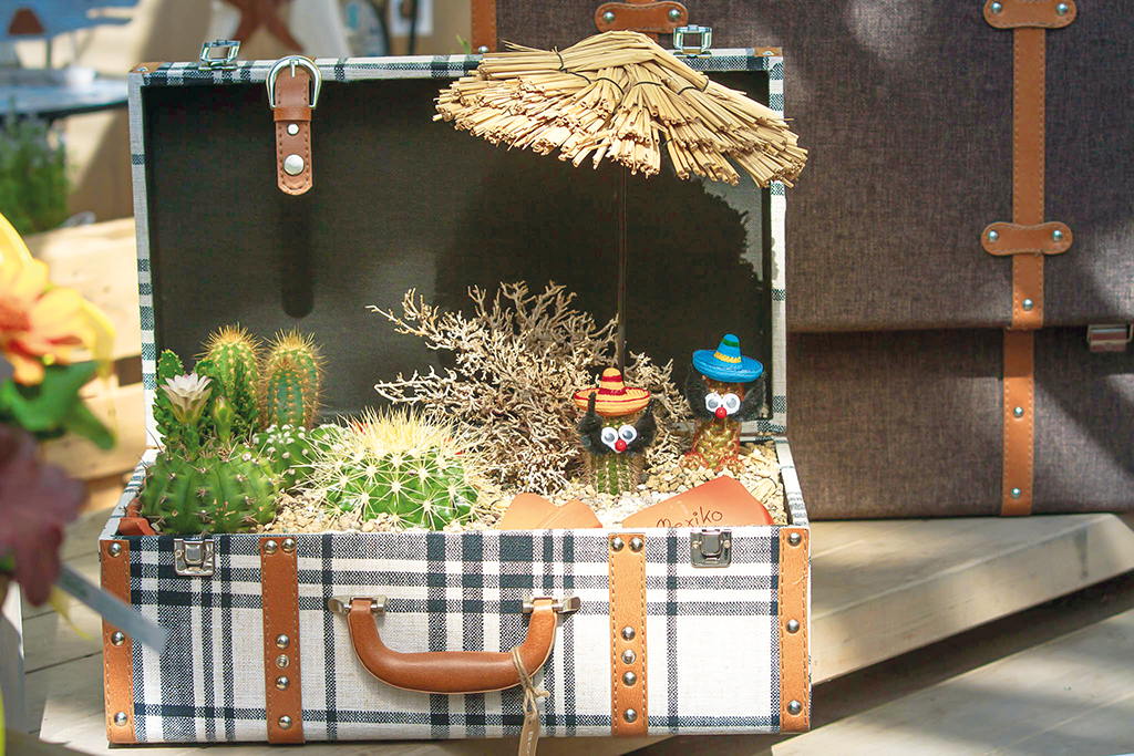 Alte Zinkschalen lassen sich in kleine Gärten verwandeln. Hier kombinieren sie verschiedene Kakteenarten, um durch die unterschiedlichen Wuchshöhen und Formen Spannung zu erzeugen. Säulenkakteen, wie der Cereus Peruveanus Spiralis fallen durch ihre bizarre, spiralig gedrehte Säulenform ins Auge. Dazu arrangieren sie Kugelkakteen wie z.B. Mammillaria oder Rebutia. Diese Arten begeistern auch mit leuchtenden Blüten.