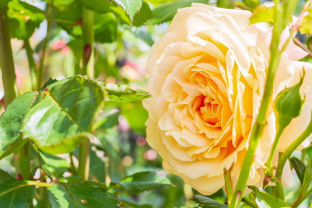 Für einen romantischen Look empfehlen wir Kletterrosen, sie benötigen einen sonnigen Standort und einen tiefgründigen Boden und sollten regelmäßig gedüngt werden. Danken tut es die Kletterrose mit einem langen Blütenzeitraum von Juni bis in den September hinein. Das ungeheure Sortenspektrum läßt keinen Wunsch offen. Gefüllt blühend (z.B. Rosa „Orange Dawn“), ungefüllt, kleine, große Blüten. Aber auch duftende Sorten (z.B Rosa „Peach Melba“) sind in verschiedenen Größen zu bekommen. Kletterrosen können sich zum Star eines jeden Garten entwickeln.