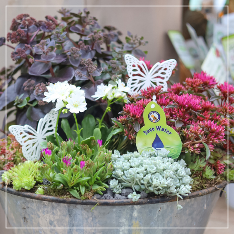 Aus der gleichen Familie kommen übrigens auch die Sedum- (Fette Henne) Arten. Sedum wie z.B. Telephium lassen sich sehr gut mit dem Sempervivum kombinieren. So blüht das Dickblatt Sedum floriferum ‘Weihenstephaner Gold’ über Wochen in strahlemden Gelb. Die Ansprüche an den Standort und positiven Eigenschaften sind genau dieselben wie bei dem Sempervivum.