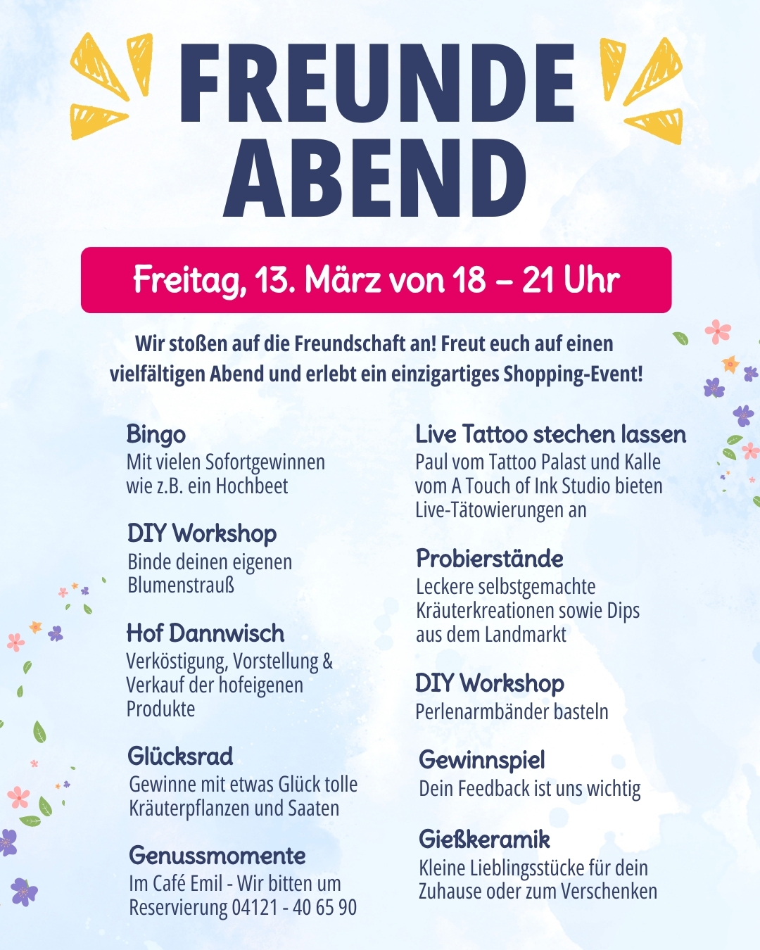 Am Freitag, den 13. März von 18–21 Uhr feiern wir gemeinsam die Freundschaft – mit einem ganz besonderen Shopping-Event! 🥂