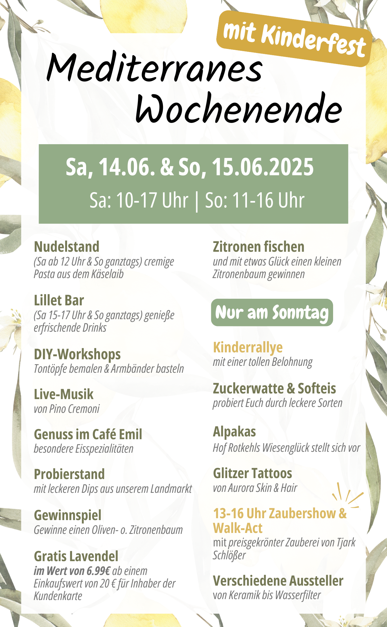 Mediterranes Wochenende mit Kinderfest 🌿